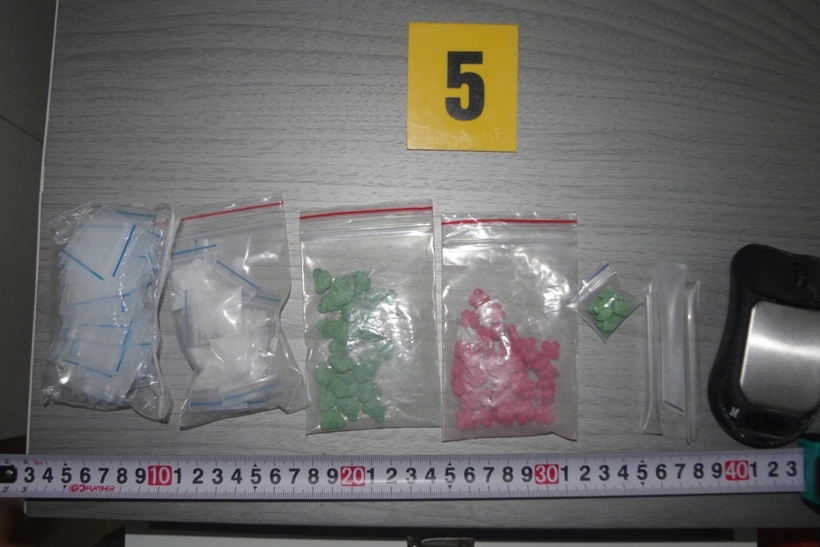 Khám xét khẩn cấp nơi ở của Phúc, lực lượng điều tra thu giữ thêm: 13 bịch nylon chứa tinh thể rắn; 1 bịch nylon chứa 42 viên nén màu đỏ; 1 bịch nylon chứa 27 viên nén màu xanh; 1 bịch nylon chứa nhiều viên nén màu xanh bị vỡ với tổng khối lượng 50,1981 gram ma túy.