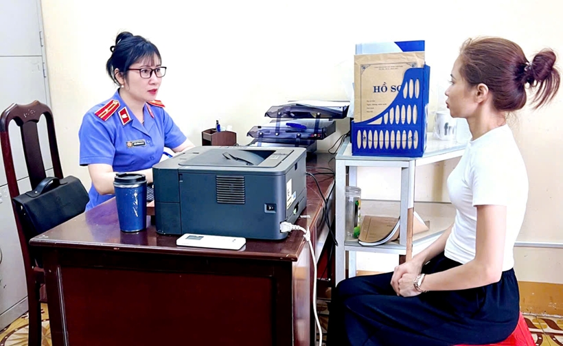 Đại diện VKSND khu vực 1 làm việc với đối tượng. |