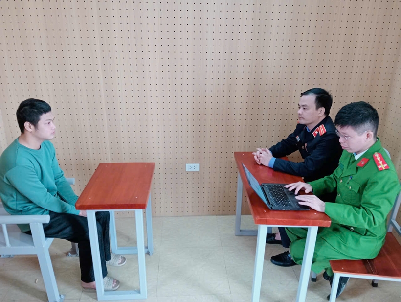 | Kiểm sát viên phối hợp với Điều tra viên làm việc với bị can Nguyễn Viết Anh Dũng. |