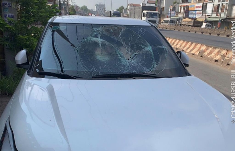 Đối tượng trèo lên xe ô tô tải biển số 60C-972.xx và dùng chân đạp mạnh làm kính chắn gió bị nứt vỡ, gây thiệt hại ước tính khoảng 15.000.000 đồng.
