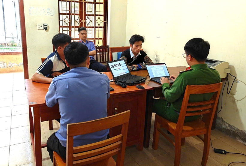 | Kiểm sát viên kiểm sát việc lấy lời khai đối tượng. Ảnh: CA Lào Cai. |