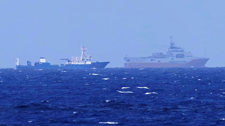 | Nhóm tàu Hải Dương 8 của Trung Quốc xâm phạm chủ quyền Việt Nam. Ảnh: TNO |