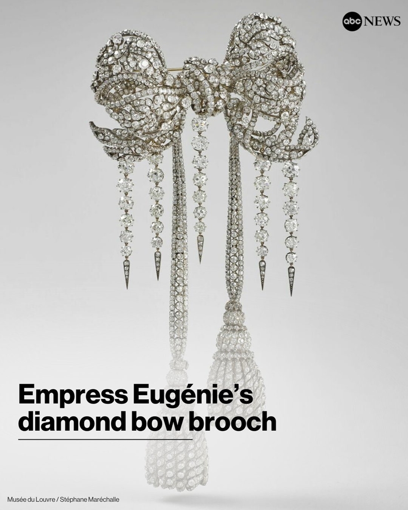Theo Bộ này, Vương miện của Hoàng hậu Eugenie, món đồ thứ 9 bị lấy cắp, đã được tìm thấy bên ngoài hàng rào bảo tàng, nơi những tên trộm đã đánh rơi báu vật trong quá trình tẩu thoát. Theo Bảo tàng Louvre, vương miện chứa 1.354 viên kim cương và 56 viên ngọc lục bảo.