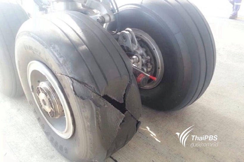 | Một trong các bánh của càng đáp máy bay bị nổ. Nguồn: ThaiPBS. |