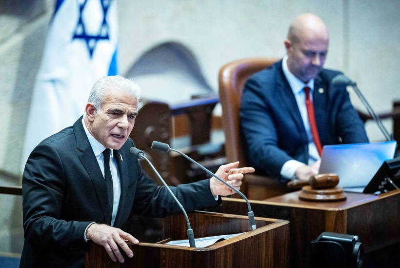 | Lãnh đạo phe lập Yair Lapid (bên trái), người yêu cầu đình chỉ việc bổ nhiệm ông Braverman làm Đại sứ tại Anh. Ảnh: Yonatan Sindel/Flash90. |