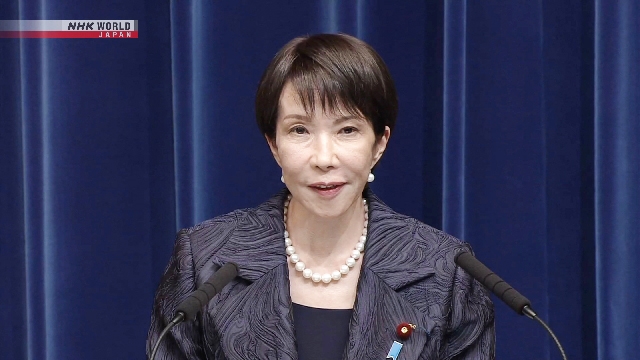 | Tân Thủ tướng Nhật Bản Takaichi trong bài phát biểu đầu tiên trước Quốc hội. Ảnh: NHK. |