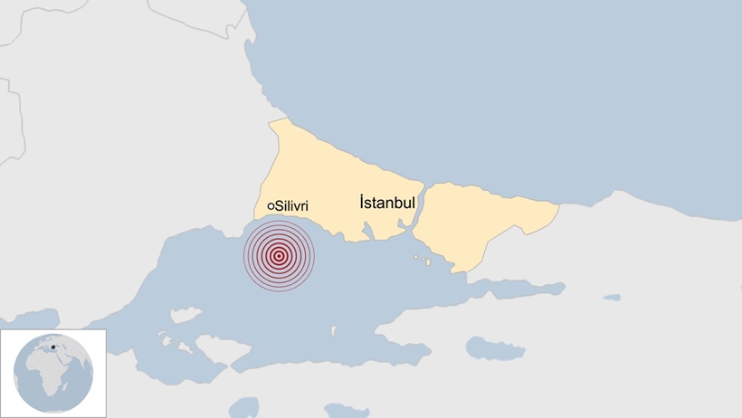 | Tâm chấn trận động đất nằm ở ngoài khơi bờ biển phía nam huyện Silivri, tỉnh Istanbul, trên biển Marmara/ BBC. |