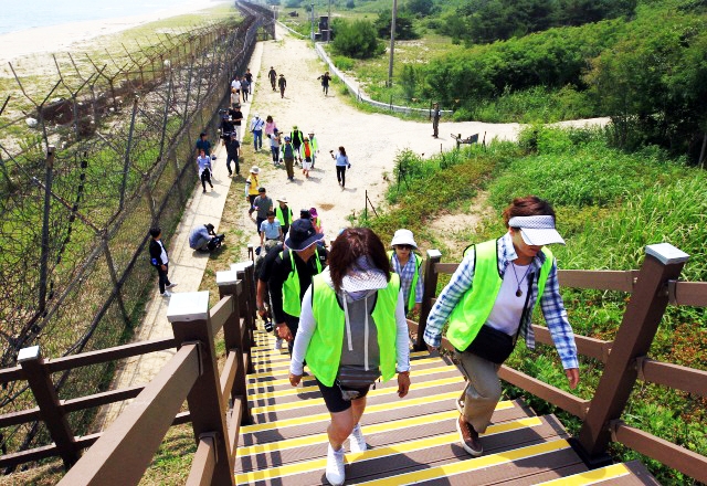 | Đoạn giáp biển của con đường hòa bình thuộc khu phi quân sự (DMZ) ở Goseong, Gangwon. Ảnh: Goseong County. |