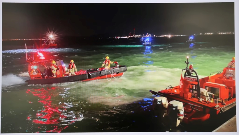 Nhân viên an ninh đầu tiên, 30 tuổi, được thợ lặn cứu hộ kéo lên khỏi mặt nước và được xác nhận đã tử vong tại hiện trường lúc 5h55’. Người còn lại, 41 tuổi, được đưa đến bệnh viện địa phương và được xác nhận đã tử vong lúc 6h26’.