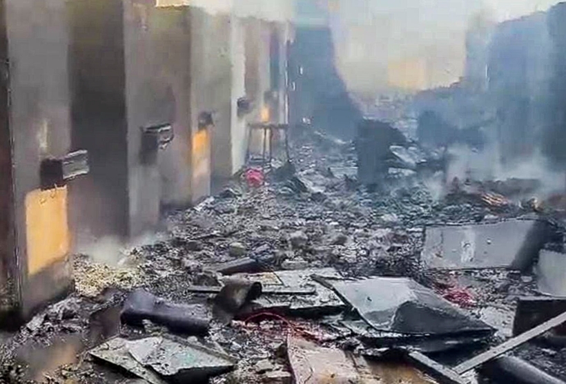 Các hình ảnh hiện trường cho thấy, mái và nhiều bức tường của nhà xưởng đã bị hất tung, trong khi mọi thứ bên trong xưởng dường như đã cháy thành than.