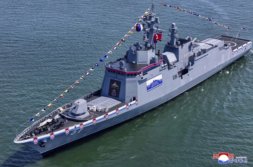 | Triều Tiên hạ thủy tàu khu trục mới Choe Hyon vào ngày 25/4/2025. Ảnh: KCNA. |