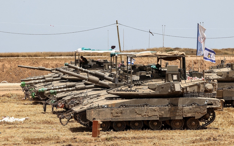 | Xe tăng của Israel tập kết ở biên giới với Dải Gaza, ngày 17/5, sẵn sàng cho một chiến dịch quy mô trên bộ ở Gaza. Ảnh: Jack GUEZ / AFP. |
