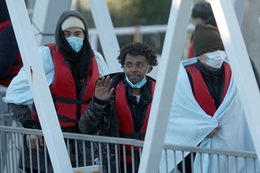 | Người di cư được Lực lượng Biên phòng Anh đưa vào cảng Dover sau khi được giải cứu trên eo biển Channel, ở Dover, Anh, ngày 14/1. Ảnh: Reuters / Hannah McKay. |