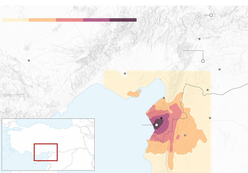 | Trận động đất đêm ngày 20/2 xảy ra ở Hatay, Thổ Nhĩ Kỳ, gần biên giới với Syria. Nguồn: USGS. |