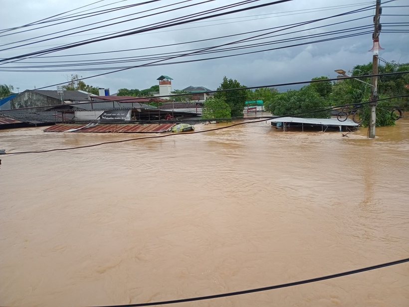 | Nhiều khu dân cư ở Hat Yai, Thái Lan ngập sâu hàng mét nước. Ảnh: Somporn Rakwong. |