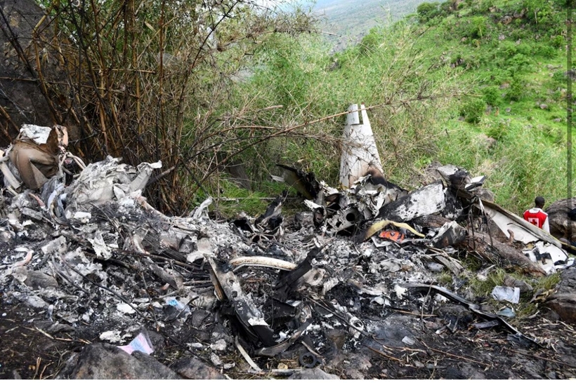 | Chiếc máy bay khách hạng nhẹ rơi xuống một sườn núi. Nguồn: Dhanjivpandey. |