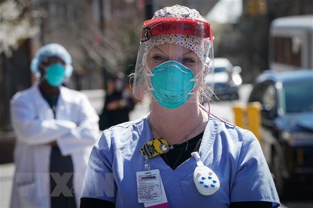| Nhân viên y tế đeo khẩu trang N95 và các thiết bị bảo hộ nhằm ngăn virus SARS-CoV-2 gây dịch COVID-19 tại New York, Mỹ. Ảnh: AFP/TTXVN |