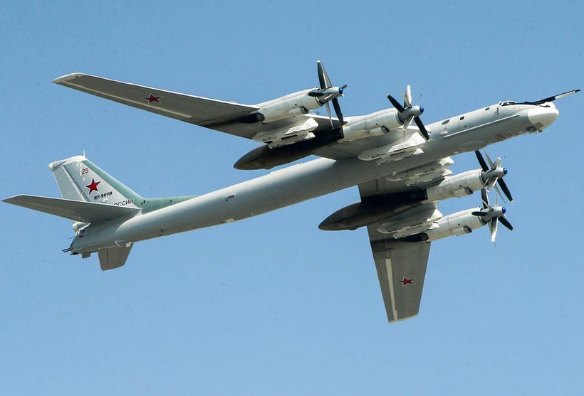 | Máy bay ném bom chiến lược tầm xa Tu-95MS tham gia cuộc diễn tập hạt nhân của Nga. Ảnh: Mikhail Tereshchenko / TASS. |