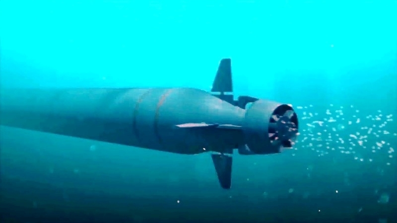 | Ngư lôi Poseidon có thể tạo sóng thần phóng xạ hủy diệt vùng bờ biển đối phương. Ảnh: TASS. |