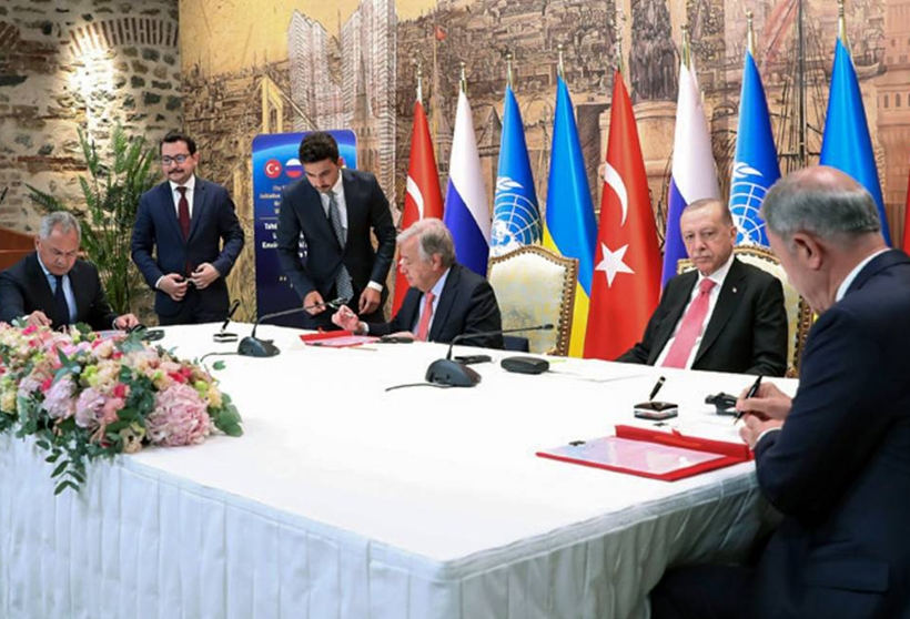 Việc ký kết thỏa thuận tại Istanbul được chứng kiến bởi Tổng thư ký Liên hợp quốc Antonio Guterres và Tổng thống Thổ Nhĩ Kỳ Recep Tayyip Erdogan, người đóng vai trò thúc đẩy các cuộc đàm phán, cũng là nhà lãnh đạo NATO hiếm hoi có quan hệ tốt với cả Moscow và Kyiv.