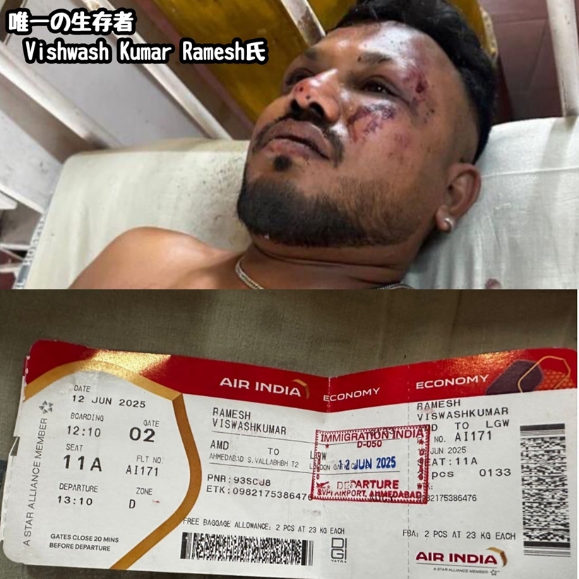 Theo cảnh sát, trong số 242 người trên chiếc Boeing 787-8 gặp nạn chỉ có một người sống sót là Vishwash Kumar Ramesh, 40 tuổi, một công dân Anh gốc Ấn Độ, người ngồi ghế số 11A gần một cửa thoát hiểm bên trái ở phần đầu máy bay.