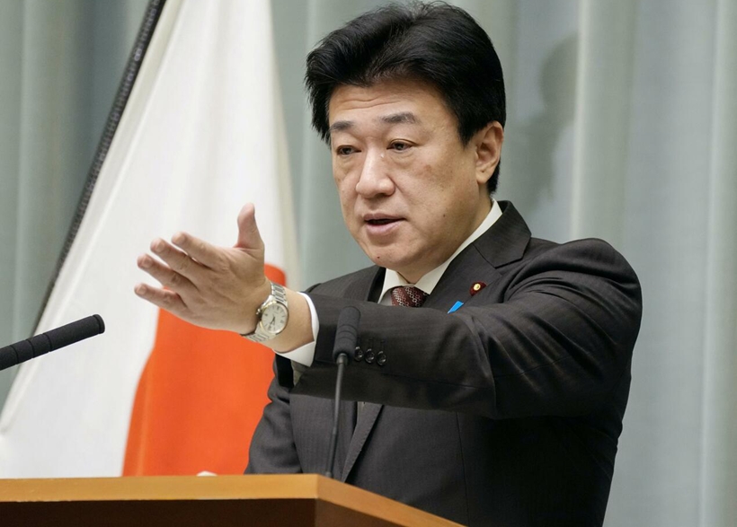 | Chánh Văn phòng Nội các Nhật Bản, Kihara Minoru, trong cuộc họp báo. Ảnh: Kyodo. |