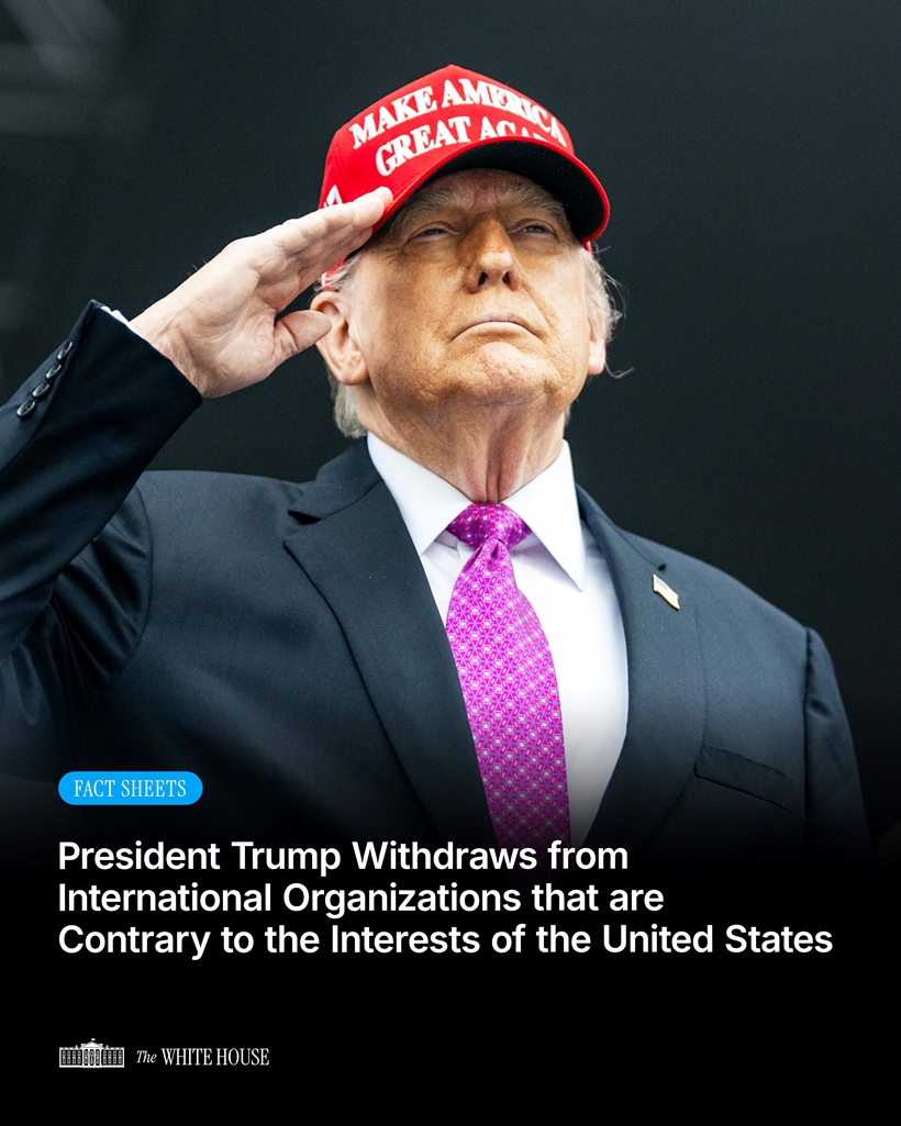 Ngày 7/1, Nhà Trắng đã ban hành thông báo của Tổng thống Mỹ Donald Trump, về quyết định rút Mỹ ra khỏi 66 tổ chức quốc tế thuộc và không thuộc Liên Hợp Quốc (LHQ) “đi ngược lại lợi ích quốc gia, an ninh, thịnh vượng kinh tế hoặc chủ quyền của Mỹ”, trên cơ sở rà soát và báo cáo của Bộ Ngoại giao.