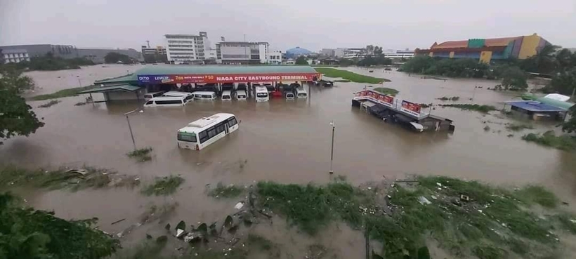 | Mưa lớn do hoàn lưu bão Trami khiến thành phố Naga trở thành biển nước. Nguồn: Global Disasters News. |