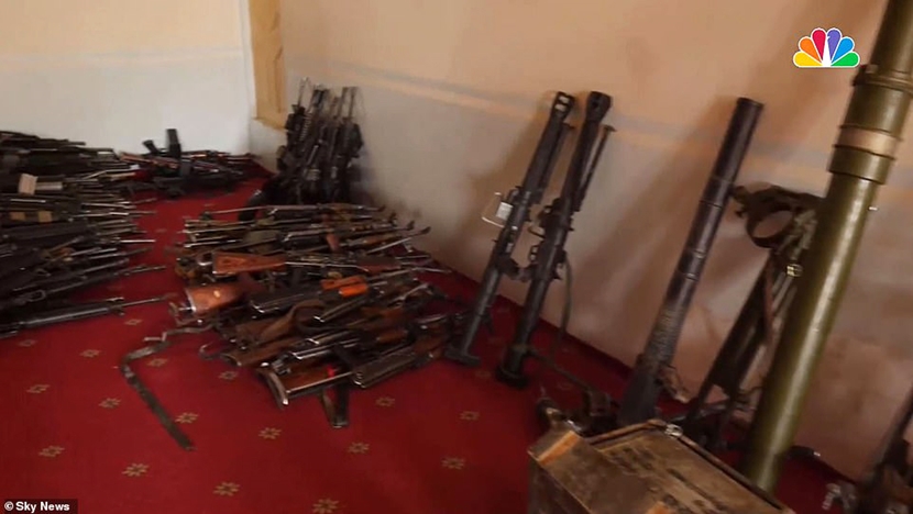 | Vũ khí và bệ phóng tên lửa Taliban thu giữ từ lực lượng Quân đội Afghanistan. Ảnh: Sky News. |