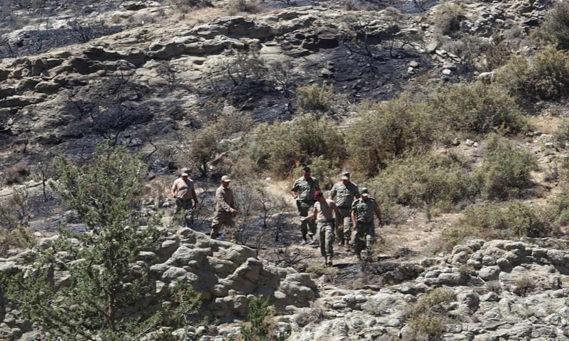 | Quân đội Cộng hòa Síp đi thu lượm mảnh vỡ tên lửa. Ảnh: Sigma TV |