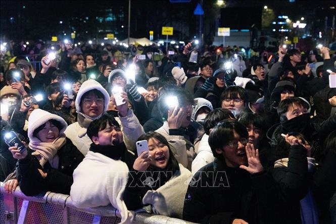| Người dân tập trung chào đón năm mới tại Seoul, Hàn Quốc. Ảnh: THX/TTXVN |