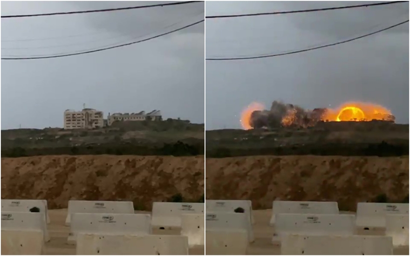 | Quân đội Israel cho nổ tung Bệnh viện Hữu nghị Thổ Nhĩ Kỳ-Palestine ở miền trung Dải Gaza, trong một video lan truyền trên mạng xã hội vào cuối tháng 10/2023. Nguồn: Timesofissrael. |