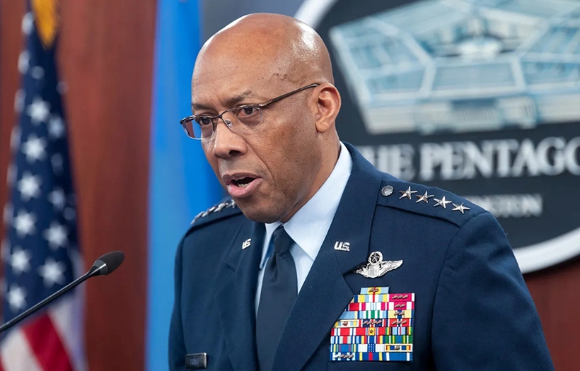 | Chủ tịch Hội đồng Tham mưu trưởng Liên quân, Tướng CQ Brown trong một buổi họp báo tại Lầu Năm Góc ở Washington, ngày 26/4/2024. Ảnh: AP/Kevin Wolf. |