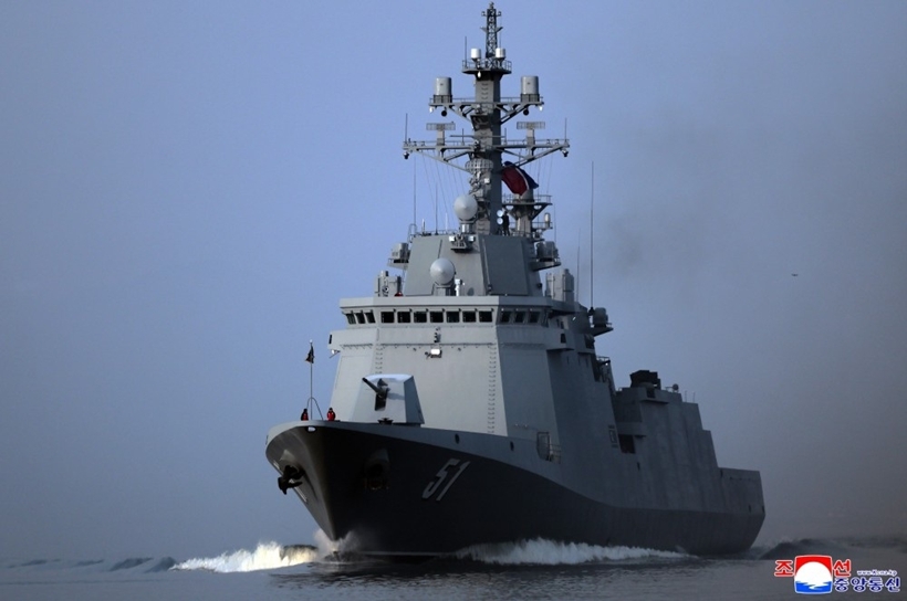 | Tàu khu trục mới Choe Hyon vừa được Triều Tiên đưa vào biên chế. Ảnh: KCNA. |