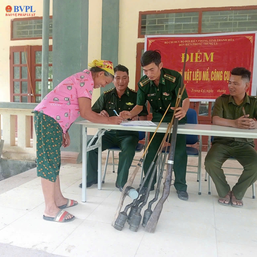 | Đồn Biên phòng Trung Lý tuyên truyền, vận động bà con giao nộp vũ khí tự chế. |