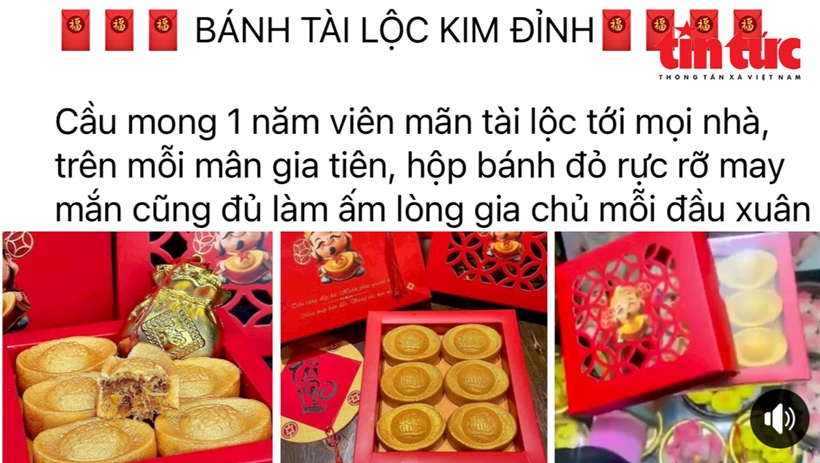 Trên mạng xã hội, nhiều tài khoản cũng đăng tải thông tin, chào bán các mặt hàng bánh tài lộc với nhiều mẫu mã đẹp mắt. Những loại bánh thỏi vàng nhỏ có giá từ 30.000 đồng, bánh hũ vàng có giá từ 300.000-500.000 đồng.