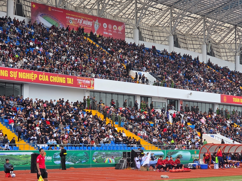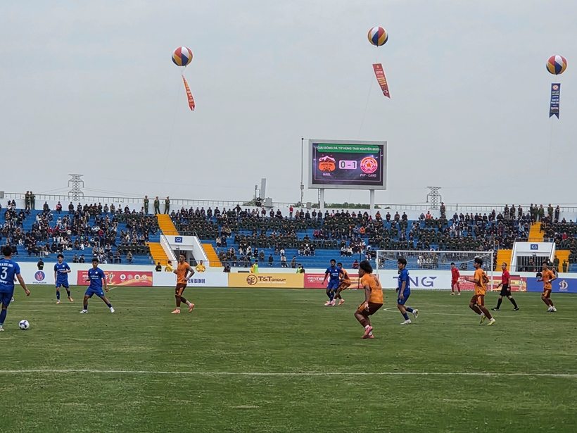 | Hàng nghìn khán giả hào hứng xem trận tranh giải nhất giải bóng đá Tứ hùng Thái Nguyên năm 2025. |