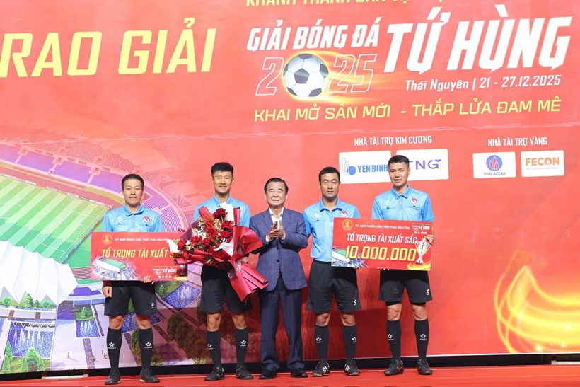 | Giải thưởng cho tổ trọng tài mùa giải bóng đá Tứ hùng Thái Nguyên năm 2025. |