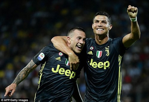 | Bernardeschi ăn mừng bàn thắng thứ 2 cùng C.Ronaldo |