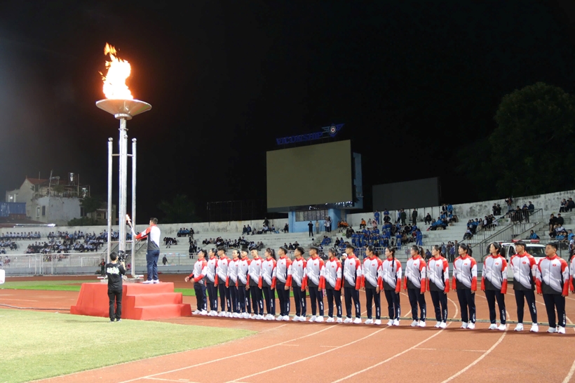 | Các vận động viên tiêu biểu thực hiện nghi thức rước lửa và thắp đuốc tại Đại hội. |