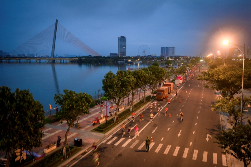 Từ sáng sớm, các vận động viên có mặt tại Công viên Biển Đông tham gia tranh tài, bắt đầu cuộc đua từ rạng sáng trong khung cảnh bình minh trên biển Đà Nẵng, lần lượt chinh phục cung đường chạy qua các tuyến phố ven biển và những cây cầu biểu tượng của thành phố.