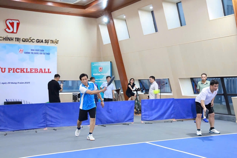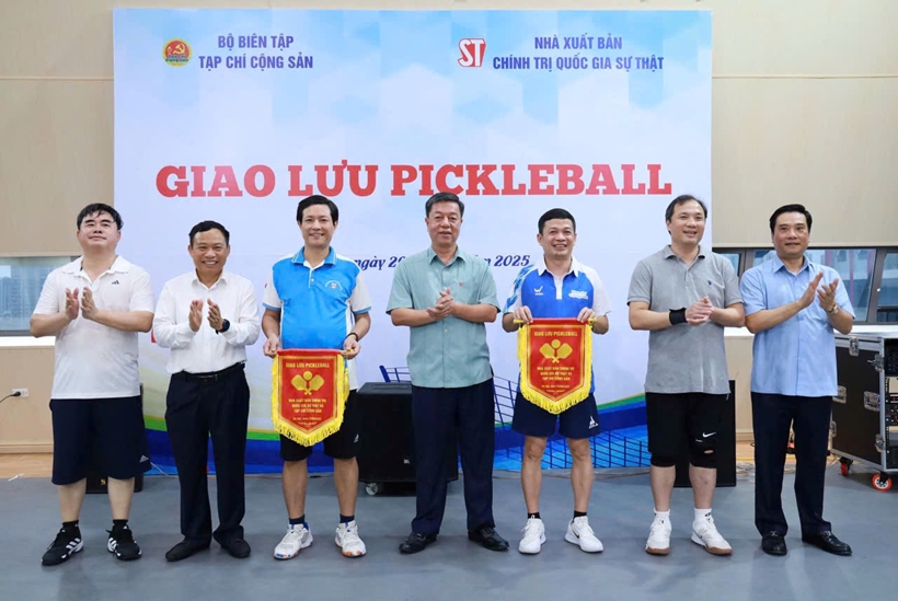“Buổi giao lưu pickleball lần này tạo sân chơi bổ ích, môi trường văn hóa lành mạnh, tạo điều kiện cho cán bộ, biên tập viên, nhân viên Tạp chí Cộng sản và Nhà xuất bản Chính trị quốc gia Sự thật có cơ hội giao lưu, học hỏi, gắn kết, phát huy tinh thần thể dục, thể thao, góp phần hoàn thành xuất sắc nhiệm vụ chính trị được giao, đồng thời làm sâu sắc thêm mối quan hệ tốt đẹp giữa 2 cơ quan”, Tổng Biên tập Tạp chí Cộng sản Hoàng Trung Dũng chia sẻ.