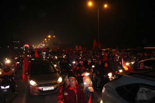 Mặc dù trời đổ mưa, nhiệt độ dưới 10 độ C thế nhưng đông đảo người hâm mộ vẫn có mặt, vẫy cao cờ đỏ sao vàng và hô vang tên các cầu thủ. Trước tình cảm của mọi người, các cầu thủ đã quyết định ký tặng ngay tại chỗ một số khán giả.