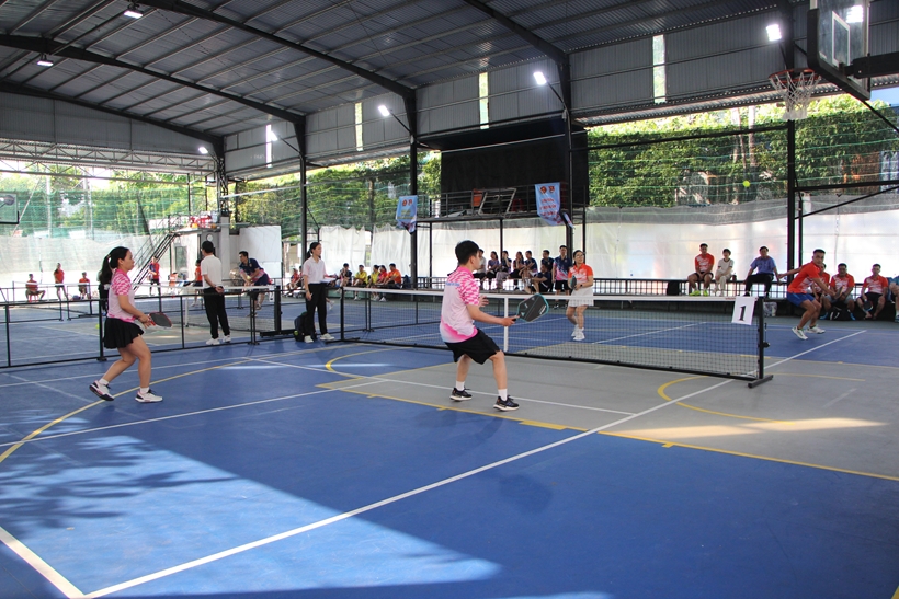 | Vận động viên thi đấu pickleball ở nội dung đôi nam nữ. |