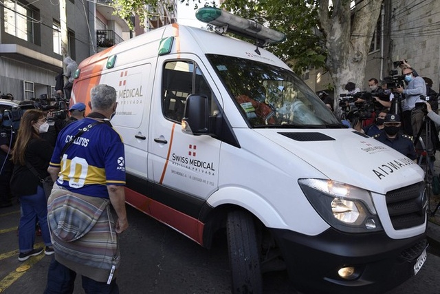| Chiếc xe cấp cứu đưa Maradona rời viện vào 6 giờ tối (theo giờ địa phương). |