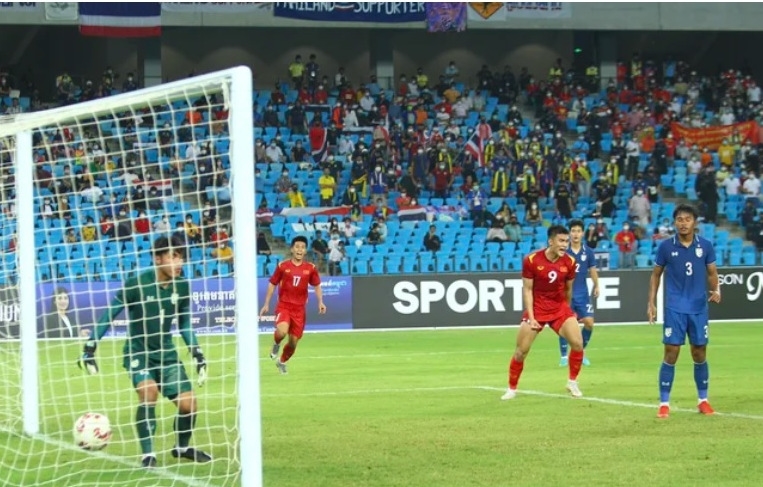 | Khoảnh khắc thủ môn U23 Thái Lan nhìn bóng đi vào lưới. Ảnh: zing.vn |