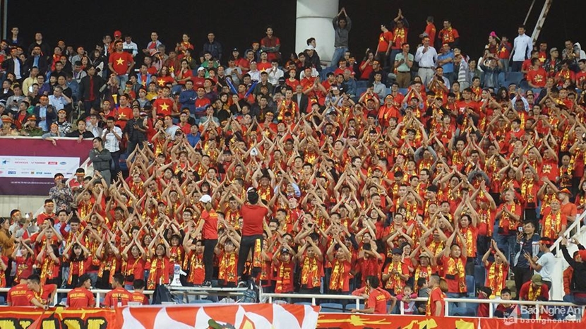 | Đội tuyển Việt Nam chơi dưới sự cổ vũ cuồng nhiệt của các cổ động viên (Ảnh: Báo Nghệ An) |
