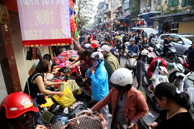 Trục đường Hàng Đào - Đồng Xuân vào dịp sát tết hàng năm lại trở thành trung tâm mua sắm hàng giảm giá, chủ yếu là quần áo, giầy dép, ví, túi, phụ kiê%3ḅn thời trang. Đây là dịp mà các cửa hàng quần áo trên tuyến phố này đồng thời xả hàng cũ để đẩy nhanh vào cuối năm.