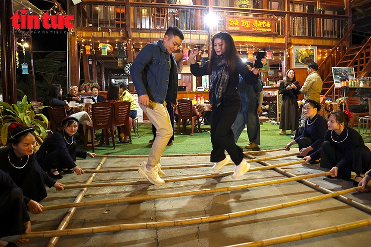 | Du khách trải nghiệm ẩm thực truyền thống cùng người dân địa phương tại Pác Ngòi. |