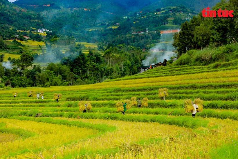 | Người dân ở đây cùng hỗ trợ, giúp nhau thu hoạch, đến ngày mùa là họ gặt từ ruộng nhà này đến ruộng nhà khác. |